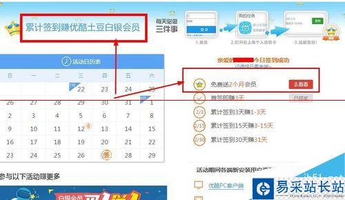 4、除了累積簽到換優酷白銀會員功能,還有個模塊是免費送2個月會員。
