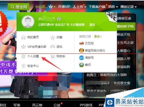 3、會彈出一個下拉的菜單,可以進行選擇,在彈出菜單中進行點擊”個人設置“的選項。