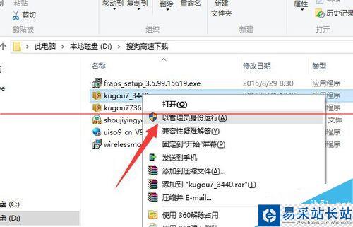 6、下載酷狗音樂最新版程序后,右擊安裝程序,選擇“以管理員身體運行”項進行安裝。如圖所示: