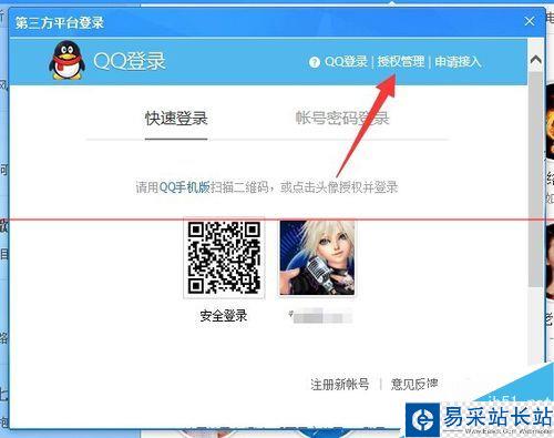 2、此時將打開“qq互聯”界面,切換到“授權管理”選項卡,點擊“酷狗音樂播放器”右側的“授權管理”按鈕。