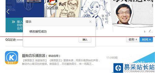 4、當顯示“修改授權成功”的提示信息時,表明授權酷狗音樂成功。如圖所示,按下來就可以再次嘗試利用QQ進行登陸酷狗音樂操作啦。