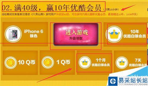 優酷游戲玩到40級,再送1個月白銀會員,相當給力。
