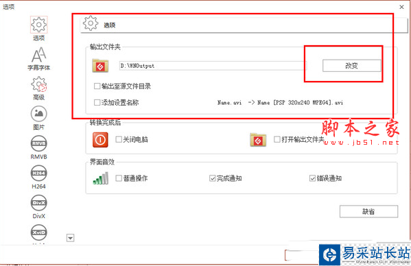 4、你也可以設置輸出位置,在選項對話框中==輸出文件夾==設置你自己想要輸出位置