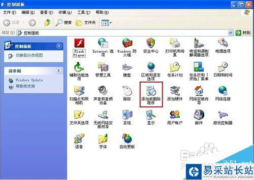 1、單擊“開始”菜單,單擊“控制面板”項,在打開的控制面板窗口雙擊“添加或刪除程序”