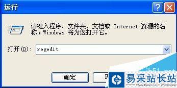 5、打開“運行”對話框,鍵入“regedit”命令,單擊“確定”按鈕