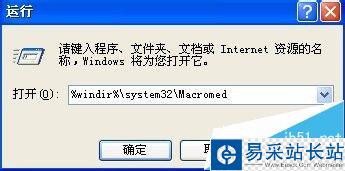 3、單擊“開始”菜單,單擊“運行”命令,在打開框中鍵入“%windir%/system32/Macromed”,單擊“確定”按鈕