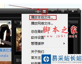 3、有時候我們需要打開本地的視頻來觀看,其操作方法是:點擊窗口右上角的“下拉按鈕”,從彈出的菜單中選擇“播放本地文件”,從彈出的“打開”對話框中選擇本地視頻文件,點擊打開按鈕即可播放。