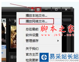 4、奇米影視盒也同樣支持網絡視頻的播放,其操作方法是:點擊窗口右上角的“下拉按鈕”,從彈出的菜單中選擇“播放網絡文件”,從彈出的“打開”對話框中輸入網絡視頻的地址,點擊確定按鈕即可播放。目前該功能支持視頻格式有:rm,rmvb,avi,mp3和mp4等。