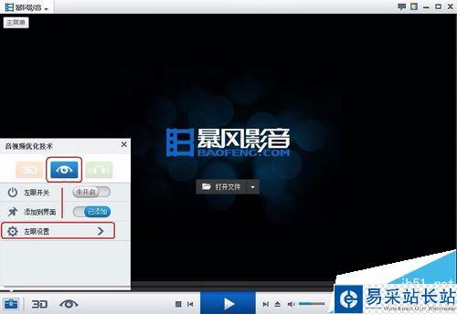 2、在暴風影音主頁面找到一個眼狀的標識,單擊開啟左眼鍵