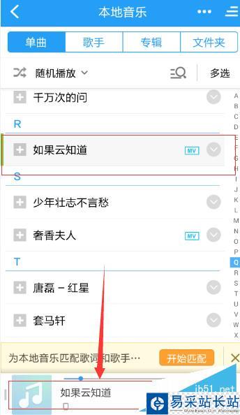 3、點(diǎn)擊本地歌曲后,進(jìn)入我們先前下載喜歡的聽的歌曲界面,里面有很多歌曲,我們選擇一個(gè)自己想分享的歌曲,點(diǎn)擊進(jìn)行播放。