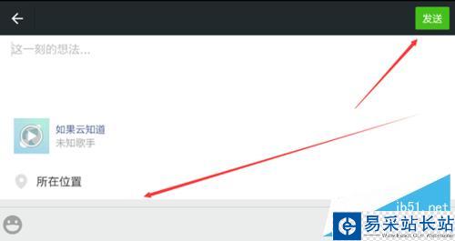 6、比如我們這里選擇分享到朋友圈,我們先點(diǎn)擊分享到朋友圈,即可彈出來一個(gè)歌曲分享朋友圈的確定界面,點(diǎn)擊發(fā)送,即成功分享歌曲。