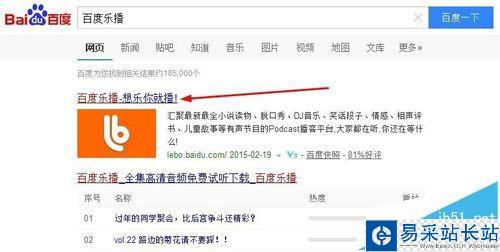 2、搜索結果中點擊百度樂播進入網頁