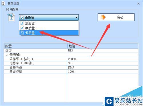 3、然后選擇低質量或者中質量,點擊確定開始轉換即可