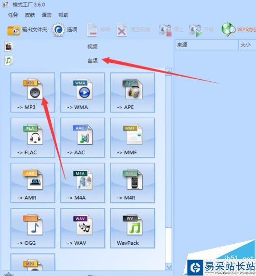 1、我們打開格式工廠軟件,然后選擇音頻,假如想要轉換成mp3格式的話,我們點擊選擇mp3,如圖所示