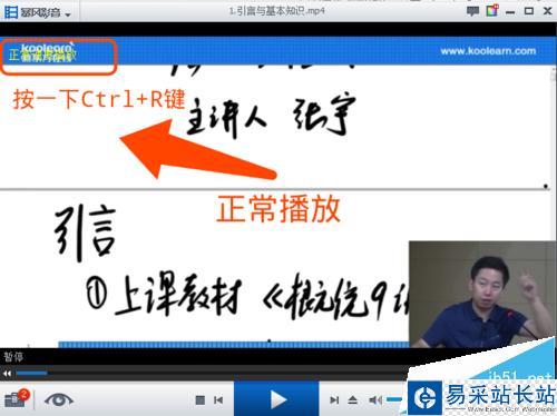 2、打開學(xué)習(xí)資料時,彈出的暴風(fēng)影音播放窗口左上角,可以用鼠標(biāo)查看播放控制功能。