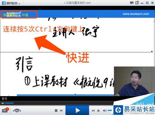 3、如果想以1.5倍速度播放,連續(xù)按5次ctrl+方向鍵頭下即可,每次增加0.1倍速度。