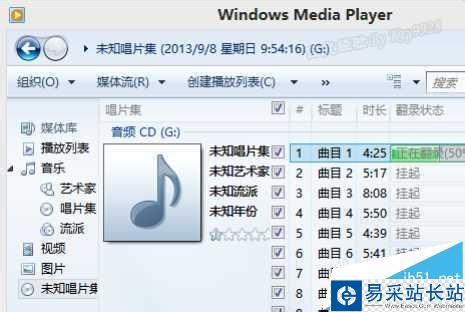 6、開始轉換,當前轉換CDA的確顯示為“正在翻錄”: