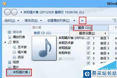 5、再點擊最右邊的“>>”,選擇“翻錄CD”: