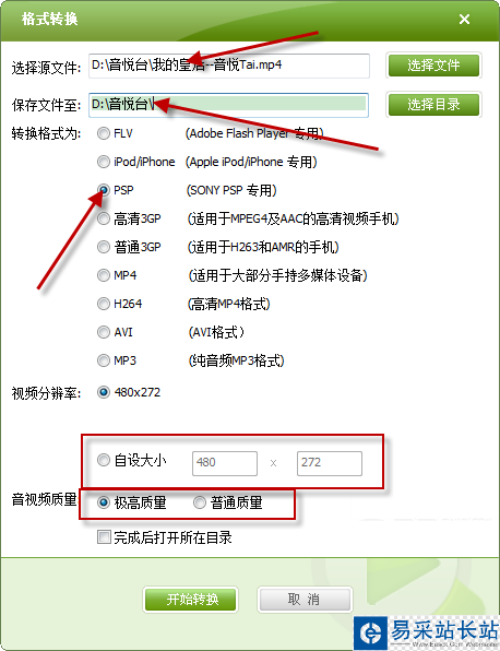 2、選擇需要轉換的視頻,以及保存目錄。需要轉換的格式,視頻大小及質量