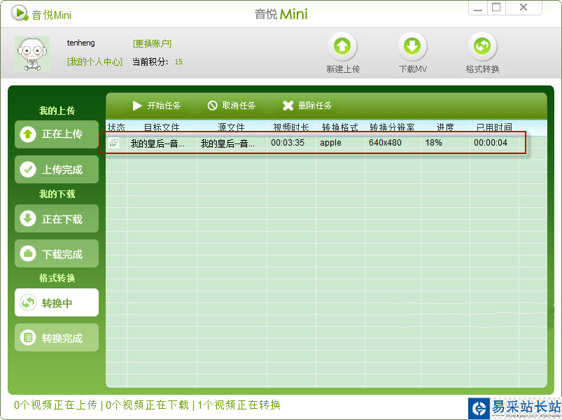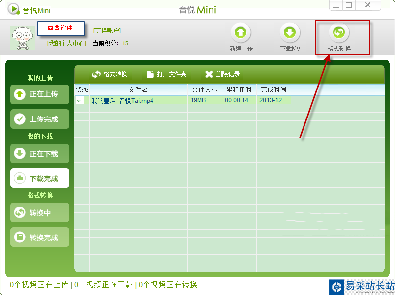 1、MV下載完后,如果想轉換為其他格式,可以點擊格式轉換