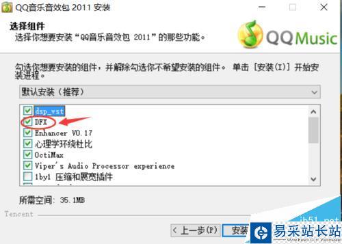 5、當步驟進行到如圖所示的這一步時,便要注意了,這里比較關鍵,在這里你可以選擇要安裝的插件。這里提供了許許多多的音效插件,小編推薦使用DFX(圖中已標出),這個音效插件功能比較全面,而且又容易使用。