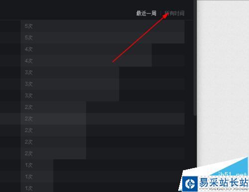 5、如果想看所有時間聽的歌曲點擊最近一周播放歌曲后面的所有歌曲,就會看到自己聽的次數最多的歌曲。