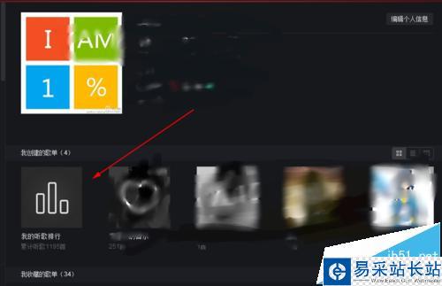 3、然后點擊自己的頭像,點擊頭像以后會看到我創建的歌單里 有一個網易云音樂自動為你創建的歌單我的聽歌排行榜,點擊進去。