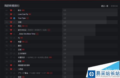 4、點開以后會看到我最近(只有登陸的時候才會記錄播放的歌曲)登陸時播放的歌曲的次數。
