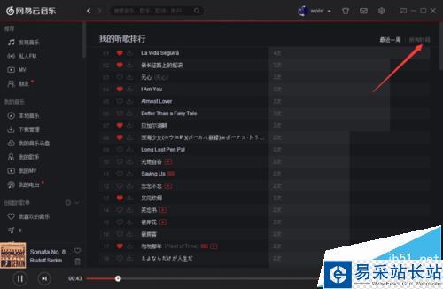 6、如圖所示就是我們所有時間的聽歌排行榜單了