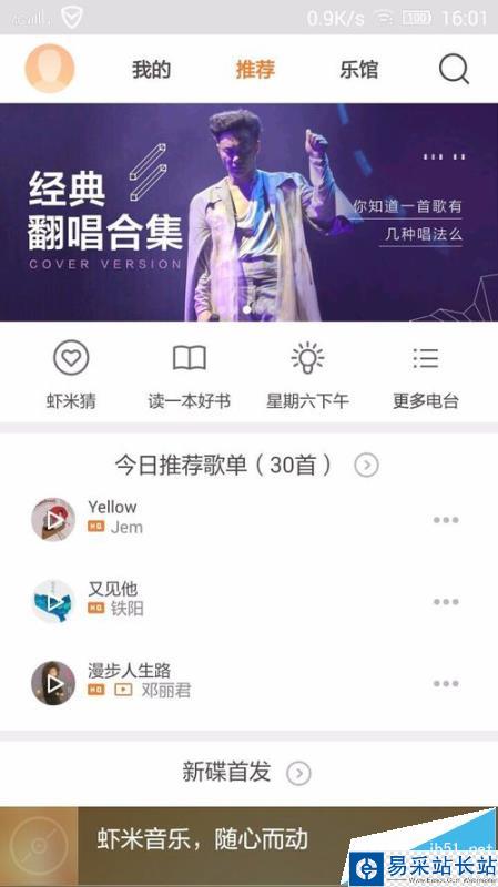 1、下載并打開蝦米音樂手機客戶端,點擊屏幕左上角的頭像圖標。