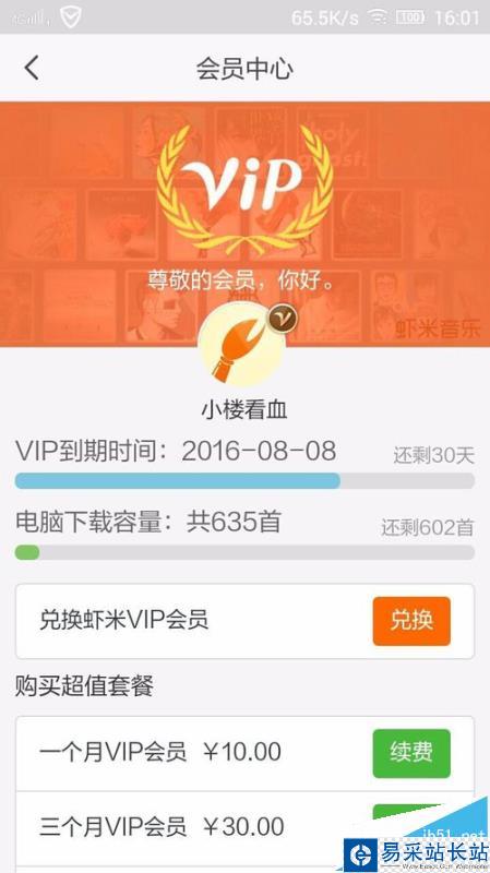 蝦米音樂VIP兌換碼可以在支付寶——會員中心中用會員積分兌換。