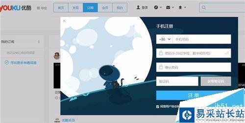 1、首先我們先去注冊個優酷視頻賬號,利用手機號碼開通即可。