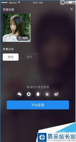 3、這一步迎接主播的就是全新的“直播封面”設置頁面,是不是很激動?不但可以選一張生活中最滿意的照片,還可以直接使用照相機自拍獲取,選擇直播分類之后還可以分享邀請好友前來觀看。