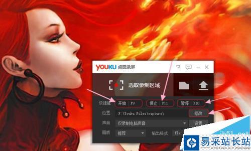 5、設置完之后我們點擊選取錄制區域,選取一片區域(或者整個屏幕),點擊下方按鈕(紅色標記處)或者按我們之前設置好的快捷鍵。