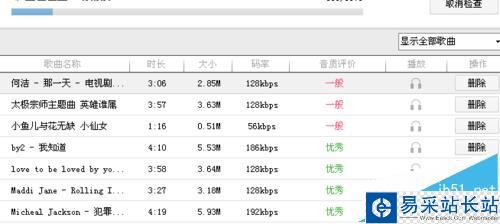 7、經過檢測,分類出優質一般等類別歌曲,接下來可以選擇刪除某些歌曲,清理內存