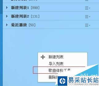 4、在列表下方空白處點擊右鍵出現下圖圖框,點擊歌曲體檢工具