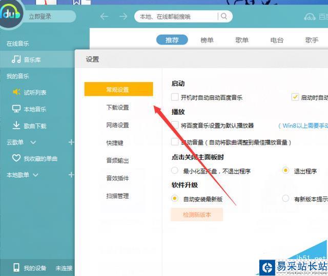 6、在常規設置選項右側窗格中,將“啟動時自動續播歌曲”選項的勾取消選擇,再點擊“全部保存”按鈕即可。如圖所示;