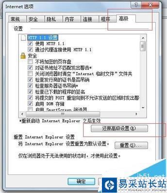 4、然后,找到“高級”,點擊“還原高級設置”。