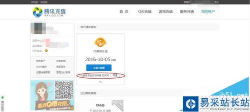 4、在右邊“我開通的服務”下方找到“付費音樂包自動續費”后面括號有兩個小字:關閉.