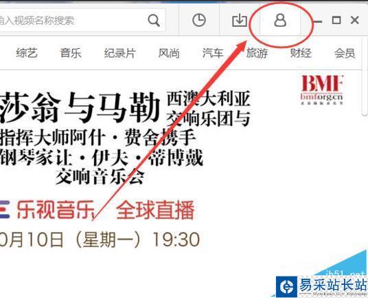 2、在打開播放器窗口,點擊右上角的“用戶中心”工具圖標按鈕。如圖所示;