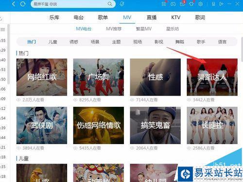2、選擇你想聽的mv的種類,這里以“舞蹈達人”為例