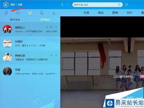1、打開酷狗音樂播放器,點擊界面中點擊mv》mv電臺