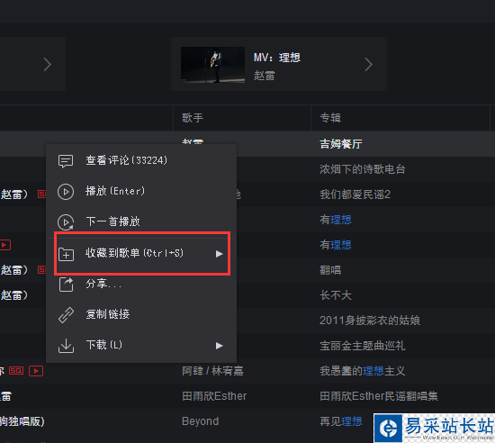 4、這樣歌單就創建成功了,我們在聽歌的時候,遇到自己喜歡聽的歌可以通過點擊右鍵,加入到歌單。