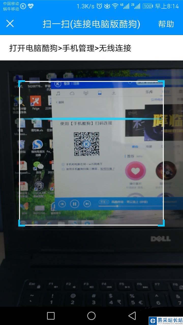 3、現(xiàn)在就會出現(xiàn)一個二維碼,現(xiàn)在提示你打開手機酷狗音樂播放器,進行掃碼連接,現(xiàn)在回到手機