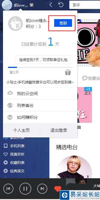 在使用酷我音樂時候,怎么通過簽到賺取積分?