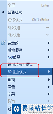 4、在播放彈出列表中選擇“3D播放模式”