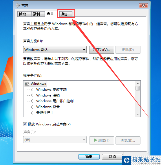 3、打開聲音設(shè)置窗口之后,我們點擊導(dǎo)航欄上的“通信”選項 如圖
