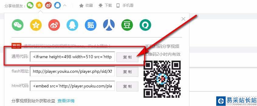 非自己上傳的視頻可以復制通用代碼。