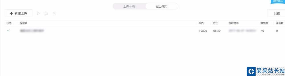 3、新建上傳,上傳自己的視頻作品,等待審核。審核成功后已上傳中“審核中”字樣會取消