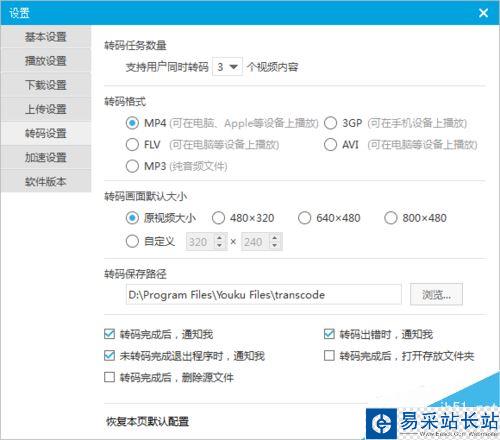 進行轉嗎設置,在這里可以選擇轉碼的視頻格式以及轉嗎保存路徑。